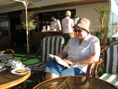 På en nilsejlads mangler kun at Agathe Christie dukker op til tea-time eller Hercule Poirot til dinner. Her er cocktailparties og bingo. Der er også tid til at læse, kigge på de øvrige mærkelig gæster: rumænere, englændere, franskmænd og sydafrikanere. | |||