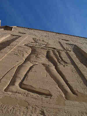 slår en bugt. Mange af templerne er sandet til i løbet af de år hvor romerne og efter dem forskellige islamiske herskere regerede. Først efter Napoleons tur ned langs Nilen i 1795 begyndte en fritlægning af monumenterne. Mange af dem ligger nu ca 10 m under normalt gadeniveau - men i niveau med den oprindelige, ikke dæmningsregulerede Nil. |